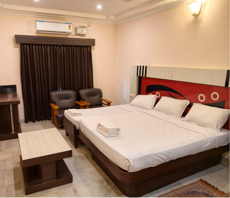 Our Triple Deluxe A/C Room offers a spacious and comfortable stay, ideal for families and small groups seeking extra room during their travel. Designed with modern interiors and a warm ambiance, this room ensures a restful and enjoyable experience from the moment you arrive. With thoughtfully planned layouts and contemporary furnishings, guests can relax in a setting that combines style and convenience. Fully air-conditioned and equipped with essential amenities, the Triple Deluxe A/C Room provides a perfect balance of luxury and practicality. Every detail—from the soothing décor to the upgraded features—has been created to offer a pleasant stay for leisure travelers, professionals, and group guests.